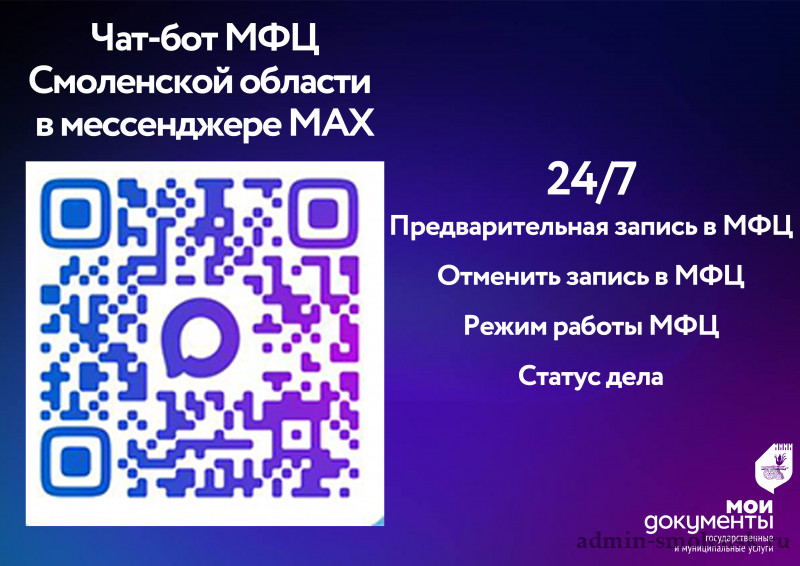 Для удобства заявителей в МФЦ Смоленской области функционируют различные цифровые сервисы. Среди них — чат-бот МФЦ Смоленской области в национальном мессенджере МАХ.