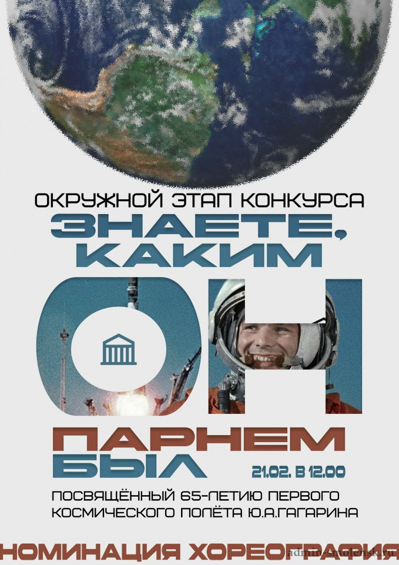 21 февраля во ДВОРЦЕ, пройдет настоящий праздник хореографии - окружной этап конкурса «Знаете, каким он парнем был!», посвященный 65-летию первого космического полета Ю.А. Гагарина.
