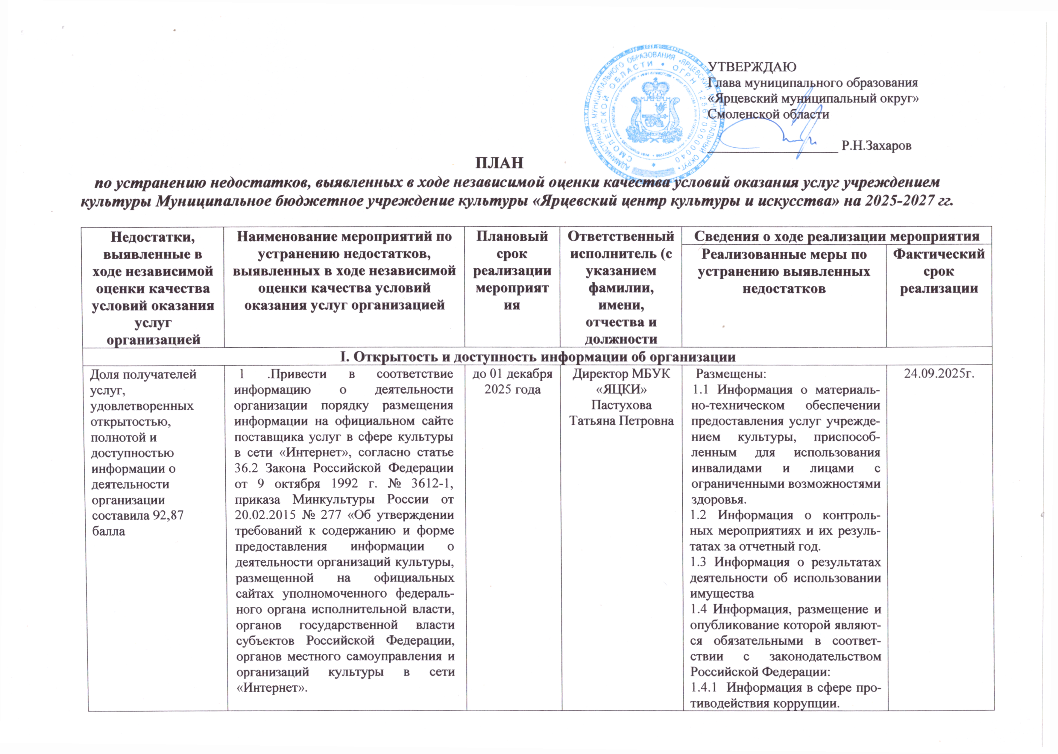 - План по устранению недостатков, выявленных в ходе независимой оценки качества условий оказания услуг